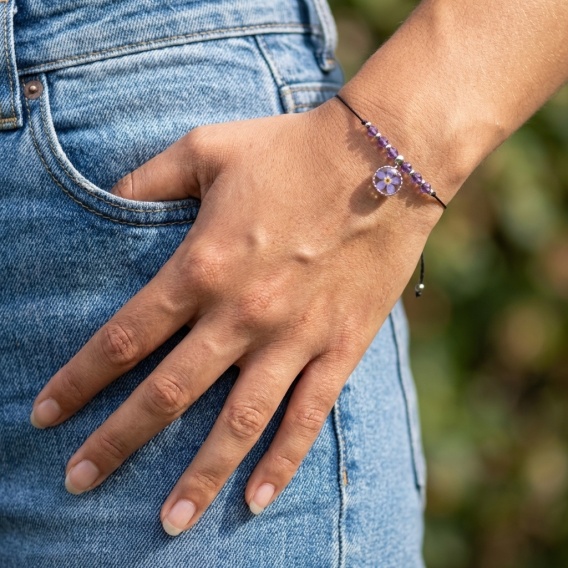 Wyjątkowa bransoletka z niezapominajką – kwiatem pamięci i więzi – oraz ametystem, kamieniem który uspokaja, zapewnia równowagę. Idealna dla tych, którzy potrzebują w swoim życiu spokoju i równowagi.