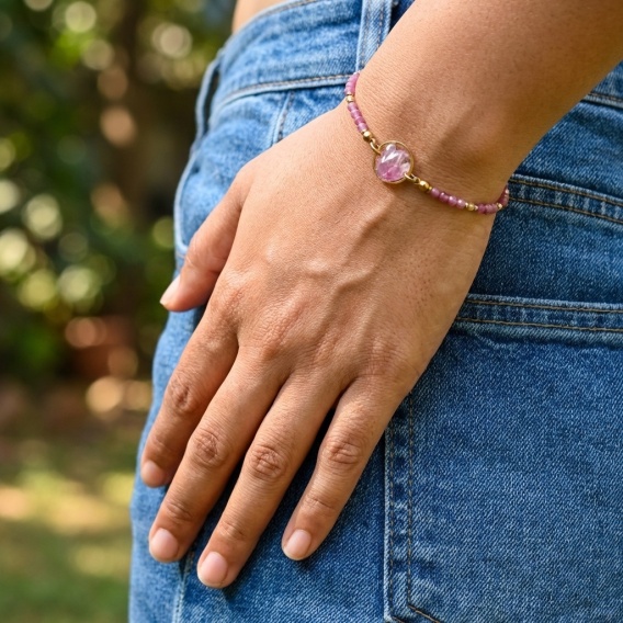 Bransoletka z żywicy z kamieniami Florastone Różowe chabry, cytryn i turmalin różowy