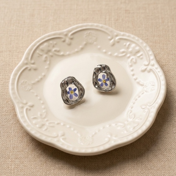 Zatopione naturalne niezapominajki– każdy kolczyk wyjątkowy