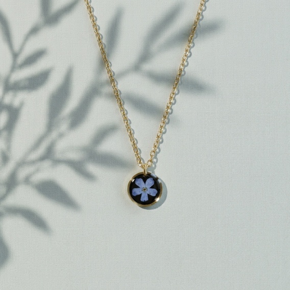 Naszyjnik z żywicy Mini Niezapominajka w czerni złota