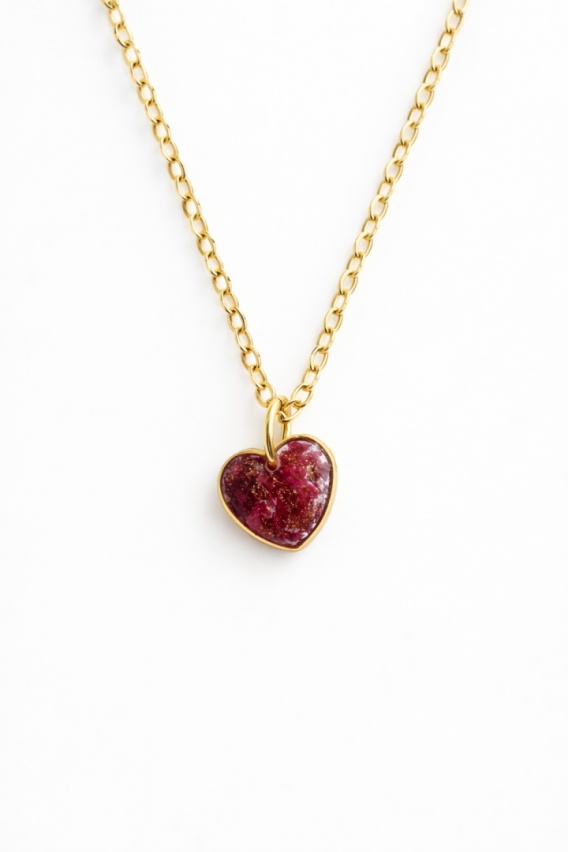 Naszyjnik z żywicy Mini serce Płatki piwonii
