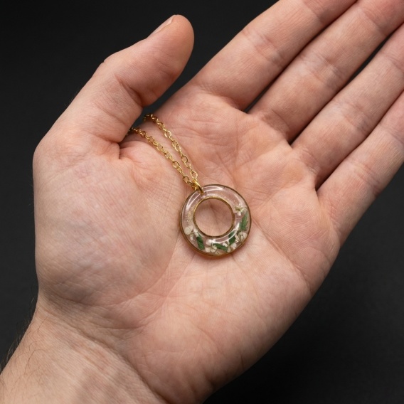 Naszyjnik z żywicy Paproć i kwiaty dzikiej marchwi