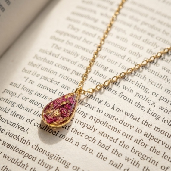 Naszyjnik z żywicy kropla Złociste Płatki róży