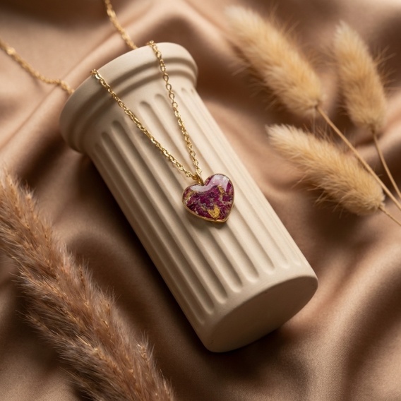 Naszyjnik z żywicy serce Złociste Płatki róży