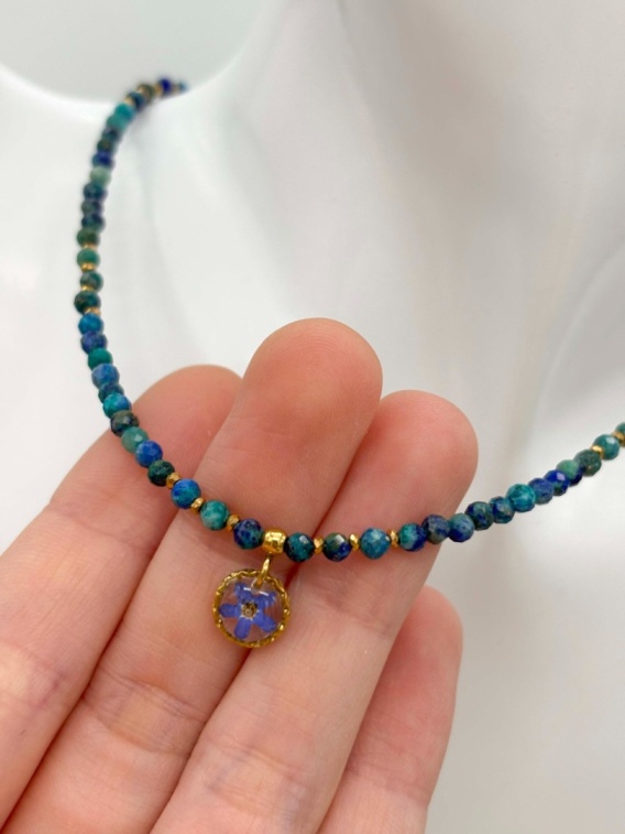 Naszyjnik z żywicy z kamieniami Florastone Niezapominajka i chryzokola