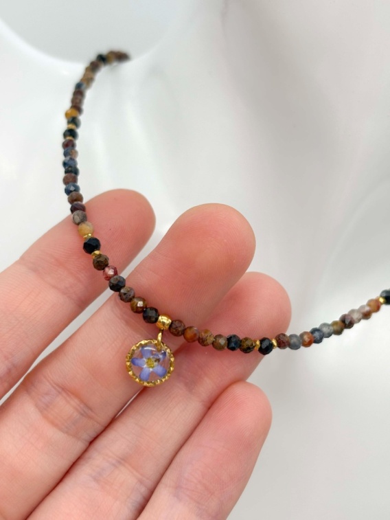 Naszyjnik z żywicy z kamieniami Florastone Niezapominajka, pietersyt